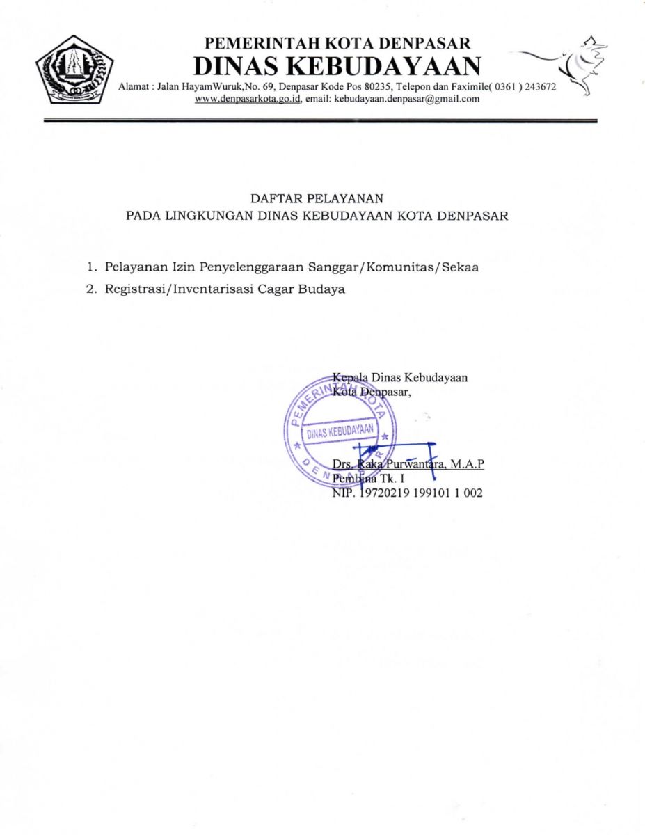 1. Pelayanan Ijin Penyelenggaraan Sanggar/Komunitas/Sekaa.